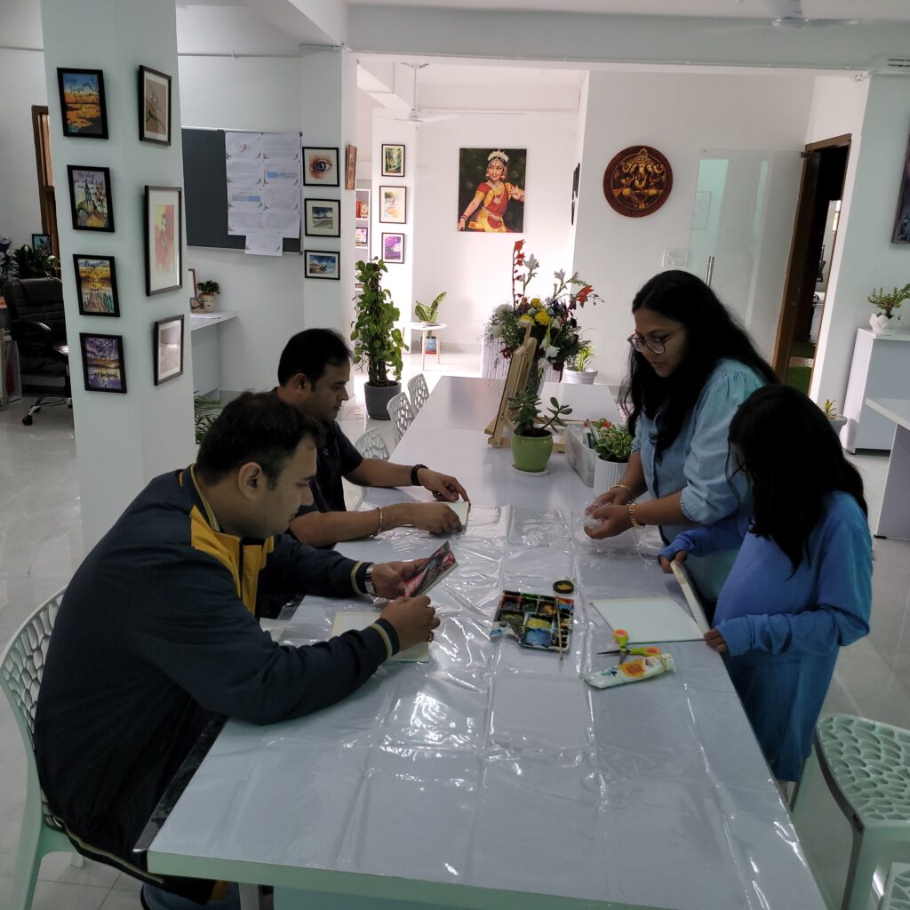 Chetna also brings the power of art into the corporate world, collaborating with organizations to enhance creativity, well-being, and team dynamics in the workplace. Whether through team-building activities or therapeutic art engagement, her workshops foster a deeper connection to creativity, mindfulness, and personal growth.